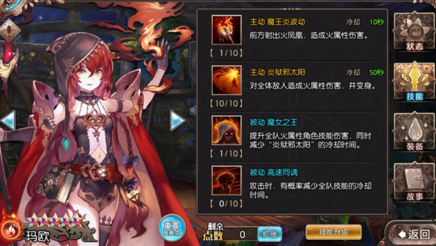 玛欧技能加点推荐:炎狱邪太阳>魔女之王>高速同调>魔王炎波动