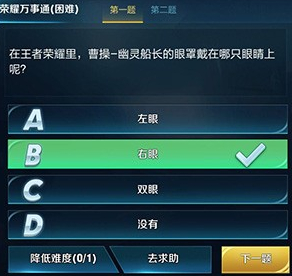 王者荣耀王者知道的王者早知道环节问答,在王者荣耀里曹操幽灵船长的眼罩戴在哪只眼睛上呢?一起来看看王者早知道简单答案吧!