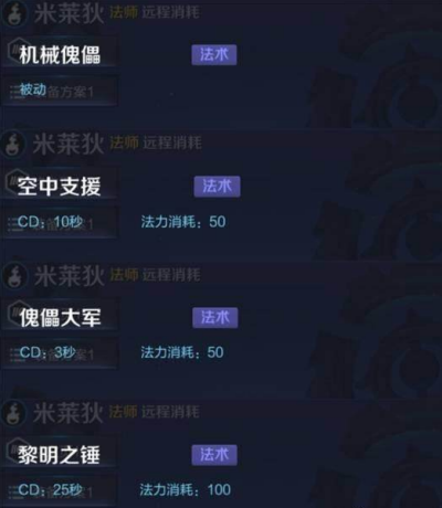 米莱狄,定位法师,主打远程消耗,技能中有傀儡名称,这个英雄应该属于召唤系,可以召唤某些东西。在安装包中有大小飞机的描述,小飞机可以聚集成大飞机,那么这个法师应该召唤的就是飞机之类的傀儡。
