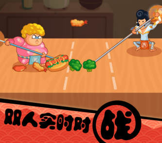 这是一场吃货间的战斗, 戳杆子去串食物然后喂到对方嘴里, 谁先把对方喂到吃不下东西就赢了! 【联机对战】 一个人的时候,也想来一盘? 单身的胖友们,一起来联网互喂吧! 【双人同屏对战】 拉上你的好朋友一起感受双人同屏对战的乐趣吧~ (注意喔,玩这游戏很容易就手碰手了!你懂得...) 【超多皮肤】 想不想看悟空从一个瘦猴子吃成一个大胖猴? 想不想看机器人也能像人类一样吃肥? 有趣的皮肤太多啦~