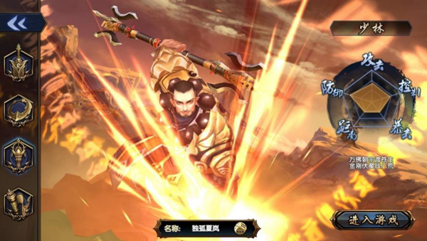 少林派中原第一名刹,佛家圣地。唐宋以来,佛教大兴,也有众多慕名之人,尘缘未断,被收留寺中,做了俗家弟子。因天下武功出少林,所以俗家少林弟子往往心系武学,也学有所成。少林鼎盛时僧俗弟子上千,称得上武林中第一大门派。游戏中少林派拥有奇高防御力特点,近身战中将其优势展现的淋漓尽致!