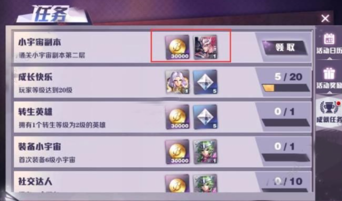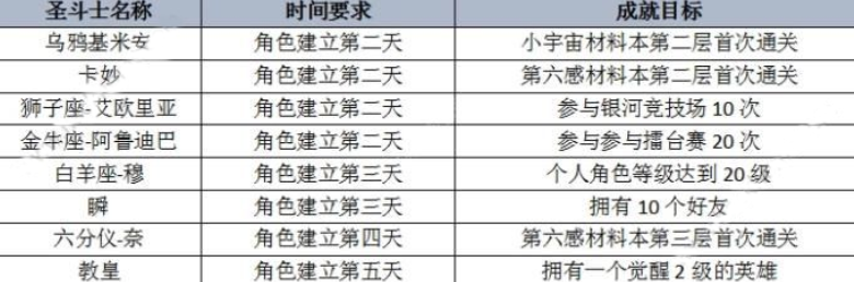 成就任务系统也是《圣斗士星矢(代号ssK)》的一个特色系统,玩家通过每天不断游戏会达成相应的成就。成就还可以解锁丰厚的奖励,当达成某些特定成就时还可以解锁获得圣斗士。需要特别说明一点:成就任务每天的目标和任务奖励都是不同的。