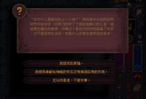 第三选项:后续选“有什么特殊好处”会被祝福,获得随机属性点加成【感谢“油猫饼”的补充】