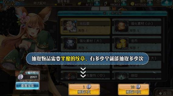 通关外传主线关卡或者【恶魔·血界侵蚀】关卡,可以获得半魔的纹章,消耗1个半魔的纹章,可以在复原的宝库进行一次特殊召唤。