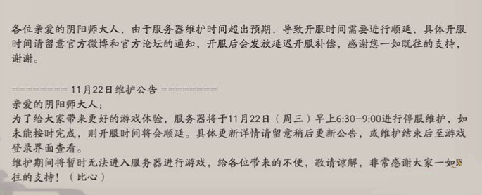 阴阳师11月22日体验服和正式服都进行更新了,很多小伙伴们最关心的就是更新了什么内容,不少小伙伴们进去的时候,发现服务器无法进入,不知道是怎么回事,因此想知道的小伙伴们,就让小编给大家详细的讲讲吧。