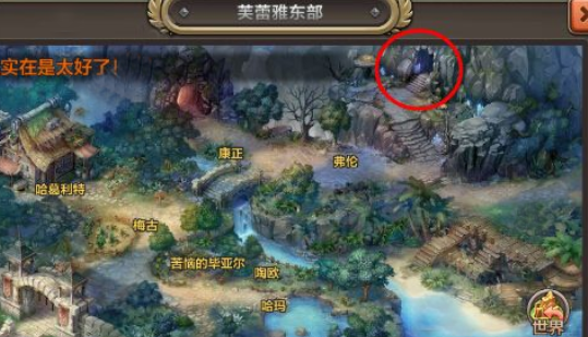 地图“芙蕾雅东部”右上角的山洞里面。山洞叫做“哈巴鲁东边洞窟”。直接点“挂机”按钮,也能在左侧地点列表中直接找到这个地图。