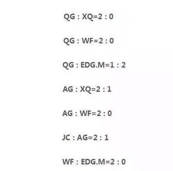 如果在最后的比赛中没有出现黑马,那基本就是这几个战队抢夺冠亚军:QG、XQ、AG、WF、JC、EDG.M,在KPL秋季常规赛中这几只战队曾经相遇过,战绩如下:
