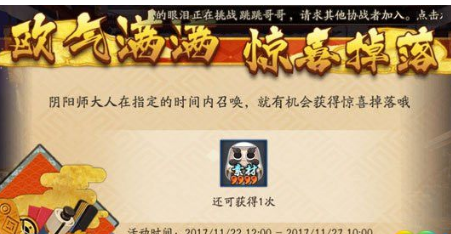 阴阳师抽卡奖励活动:惊喜掉落周期更新,更多奖励敬请期待。