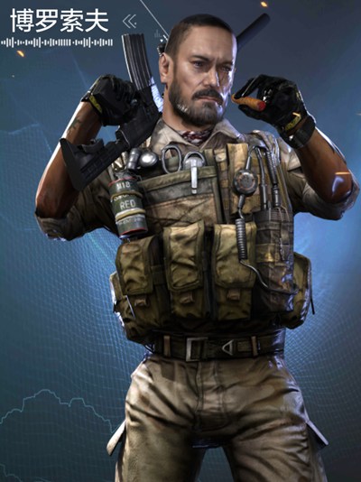 博罗索夫是一个欧洲人物角色,比其他所有的角色都要强壮,非常善于单兵作战,比较擅长使用AK47、狙击枪等,必要时徒手作战的能力也非常的强大,如果喜欢单排的玩家建议不妨尝试下这个角色。
