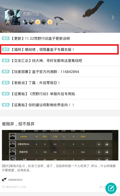 首页 → 安卓游戏资讯 → 安卓游戏攻略 → 荒野行动晒战绩免费领限量盒子专属衣服