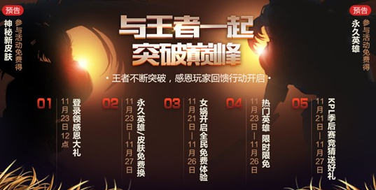 感恩每一位玩家陪伴王者荣耀走过的日子,与王者一起不断突破,在此王者荣耀也特奉大礼,回馈每一位支持我们的玩家