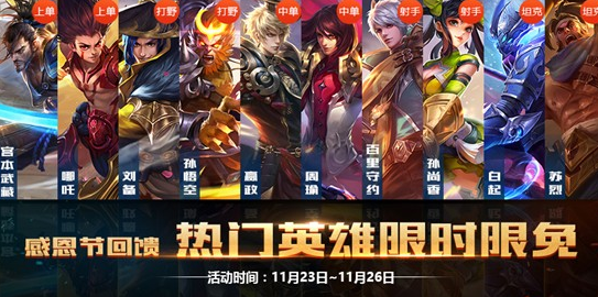 4、感恩你的热爱:英雄限免,阵容豪华(11月23日~11月25日)