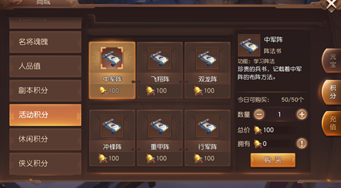 1.完成主线剧情和等级礼包就可以解锁阵法,其他的阵法可以通过积分商城中用活动积分换取。