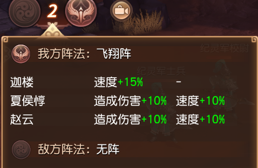 3.战斗内点左上角的阵法标志可以观察双方的阵法效果
