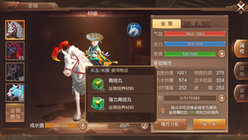坐骑的成长值可以增加坐骑的二级属性,成长值越高,提升的属性越高。可以通过育培丸、强力育培丸提升,育培丸可以通过副本积分兑换,强力育培丸可以通过金币购买。