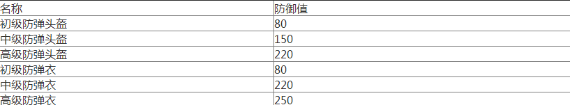 防具可分担玩家所承受伤害,耐久为0时消失,主要为防弹衣及防弹头盔,普通衣物无防御效果。