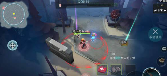 从游戏截图来看,主角手持步枪在黑暗森林中一座废弃的城市中探索,同时在主角行进的道路上可以看到地上散落的绷带、门板等补给想,而游戏提示中的“火力王已出现”似乎暗示了这是一个多人在线枪战类游戏。