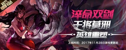 淬命双剑干将莫邪英雄重塑,即将在11月28日游戏更新后上线,2技能两剑,3技能两剑,大招刷新23技能再四剑,一秒八剑,就问你怕不怕!