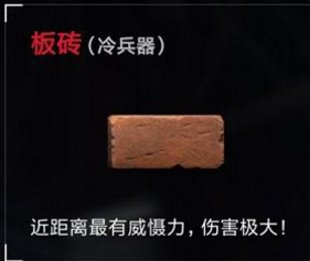 板砖使用时有技巧和时机的,你可以在背后阴人也可以跟人近战武器博弈,大多数都是伏地魔或者老阴B用板砖拍人,他们都会用静步方式到敌人身后然后一板砖拍过去吃鸡啦。