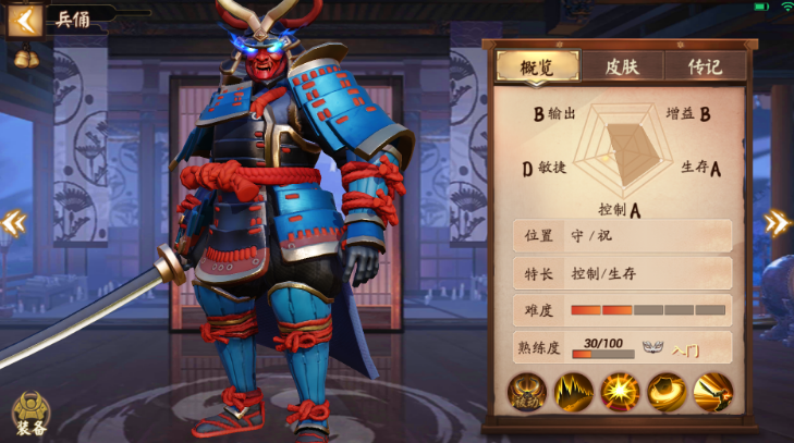 兵俑坦克类型 输出低 敏捷低控制高生存能力强 在平安京里面是守这一类也可以是坦克