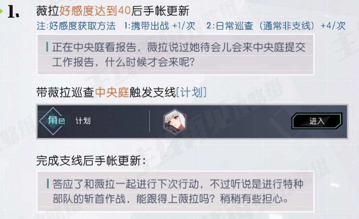 1.薇拉好感度达到40后手帐更新