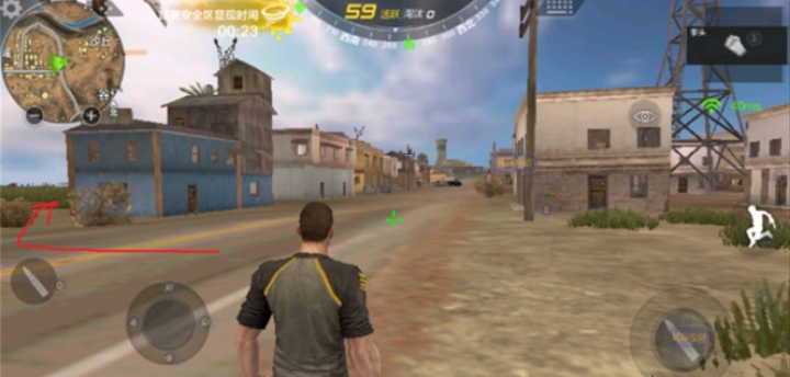 在降落之后,我们可以发现有两条公路在椰城中心穿过,两边整齐的分布着二层建筑,而且公路上没有掩体,在两边建筑上都能清楚的看到公路上的情况,所以我们要避免把公路作为我们的寻找路线,最好的做法就是沿如图1红色箭头指示方向对靠海最近的一排房子逐个进行搜索,因为不会有敌人从海上发起进攻,沿这条路线不用担心被偷袭,而且正面还有房子当作掩体。