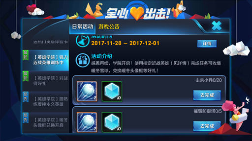 感恩再续,学院开启!使用指定远程英雄(见详情)完成任务可收集暖冬雪球,兑换暖冬头像框等好礼!
