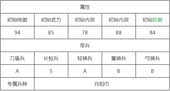 不错的前排步兵统领,能够对敌方前排造成很高的伤害输出。