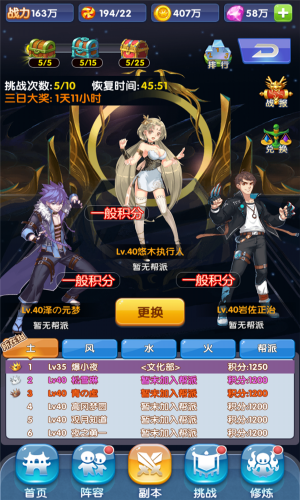 传承之战是小组制PVP系统,玩家只要到达28级即可参与传承大战。传承之战共分为土、风、水、火四个小组,系统会将玩家随机分配到其中一组,在这里玩家可以与同组对手展开积分比拼,每赢一场即可获得积分,而战败则会扣除一定积分,不过即使自身战力略逊同组对手,也可以通过多劳多得获得比对手更高的积分的。而在该赛季比赛结束后,游戏会根据玩家获得的积分决定排名等级,每个小组的佼佼者将有机会获得神将和主角套装,所以在这里只要勇于完成一定次数的挑战,也会获得保底奖励,如此厚道的比赛怎可错过。