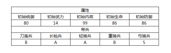 很强力的弓箭手武将,能对后排进行强力攻击,是各种情况下都能上场的武将。