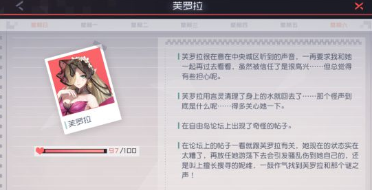 永远的7日之都芙罗拉是一个不错的神器使,玩家达到一定的好感度就能开启其手账任务,开启支线任务的玩法了,永远的7日之都芙罗拉支线任务怎么做,西西小编为大家带来芙罗拉支线任务完成攻略。