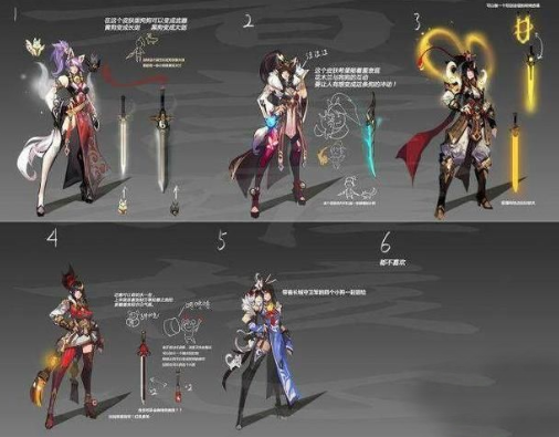 方案1就是昨日曝光的那款皮肤,两只飞狗化身两把剑;方案2也有一只狗,但是具体描述都比较模糊,仅仅只能看清外表;方案3有一种天神的感觉,看到这个方案就想起国产动漫,背后顶着一个金灿灿光环,武器也是金灿灿的特效;方案4和方案5就比较简单,没有前面三个方案那么多特效和元素。