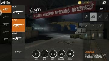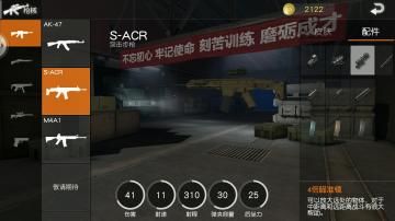 倍镜主推2倍镜和4倍镜,因为极低的后坐力,S-ACR的稳定性完全可以当中距离的狙击枪来打。而雾天4倍镜没有什么用处,可以换成2倍镜来打中近距离的扫射。