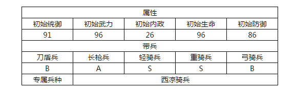 【以诚相待】马超与刘备一起为主公效力时,自身防御提升15%