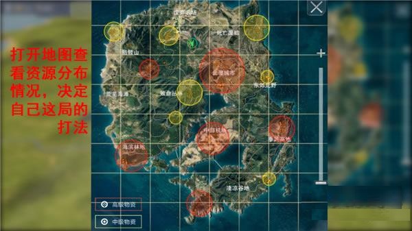 知道地图上的资源分布后,玩家首先跳伞的时候就可以有倾向的做出抉择。每局演练开始的航线都是不相同,选择降落点的时候尽量远离航线,航线上的建筑人相对较多。另外降落地点不要离中心点过远,这样演练中会比较难到达指定目标区域,如果一定要降落在地图边缘地带,记得在搜索物资后第一时间要去公路上找载具,这样可以快速达到指定目标区域。