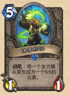 炉石传说狗头人与地下世界中立稀有卡-缚雾熊怪,战吼效果是将一个友方随从变形为6/6的元素,而自身5费1/1的身材对于进化萨又是一个削弱,那么炉石传说缚雾熊怪厉害吗,西西带来缚雾熊怪效果解析一览,希望对大家有所帮助。