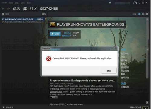 游戏中会出现部分Win7/Win8.1系统新安装绝地求生大逃杀游戏出现“Cannot find \'MSVCP140.dll\'.Please, re-install this application”错误,无法进入游戏。