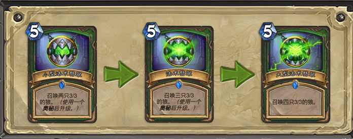 召唤三只3/3的狼(使用一个奥秘后升级)