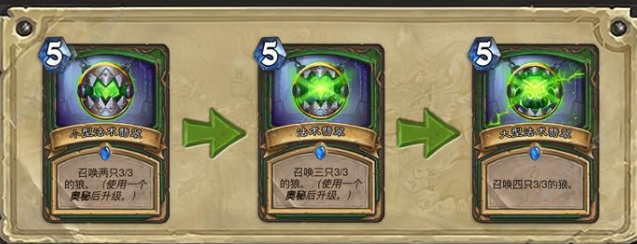 召唤三只3/3的狼(使用一个奥秘后升级)
