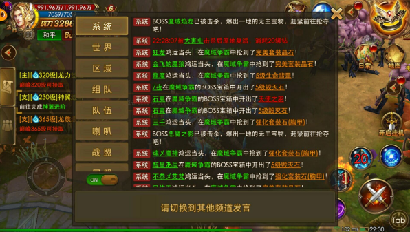 活动规则:活动开始后会匹配同世界服的多个玩家进入到魔域地图,开启魔域争霸。击杀BOSS归属队伍的每个成员,均可以获得多件永恒装备(不是碎片哦)、六代翅膀一整套材料等珍稀道具。
