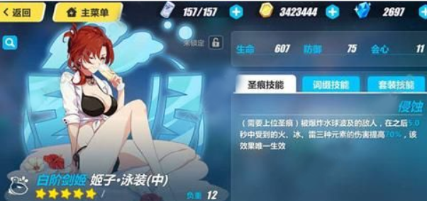 普朗克中:物理伤害提升,只是自己也会有易伤,虽然没有泳装中的buff能力,但提升了提尔主动的伤害。