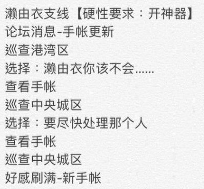 必要条件:硬性要求濑由衣必须开神器,不然中途剧情会进行不下去。
