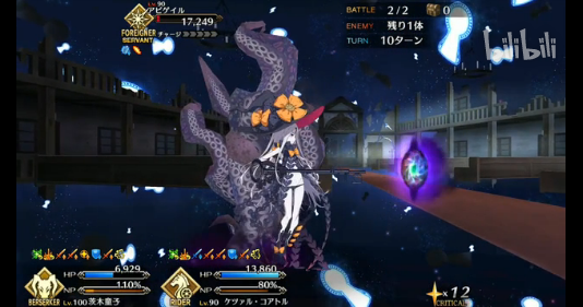 宝具是天草单体版,1.3x1.2的自身buff,伤害和莉莉丝持平(考虑到萝莉有狂化b其实比莉莉丝高一点)