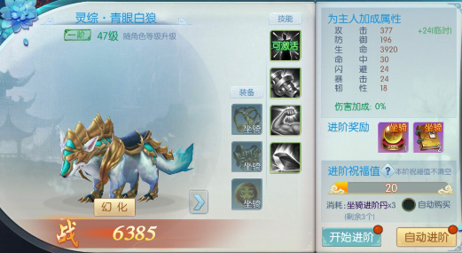 战骑进阶的时候,战骑的等阶越高,每次进阶所需要的战骑进阶丹也越多。而进阶失败会获得祝福值,祝福值可以在24小时内累积,超过24小时则会被清空,祝福值越高,越容易进阶成功。因此,在进阶的时候,一定要囤积足够多的进阶丹,以免进阶丹不足,导致进阶失败清空祝福值。