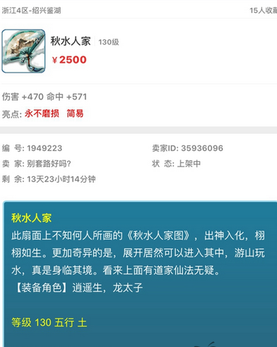 比如之前看到这个武器,感觉挺不错,藏宝阁搜了下,这个总伤的不磨武器,大概在3000+,这个2000多,我恰好也有个WZ,不过因为是烟花区的,跨服费还是挺多的,当时没买,回家一看就被秒了。。。