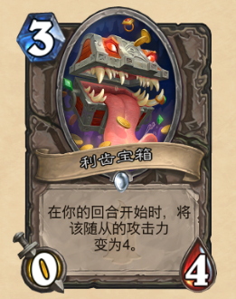 炉石传说利齿宝箱怎么样,作为狗头人版本中立白卡,炉石传说利齿宝箱效果是回合开始会变换攻击,只能说3费0-4,血量还是可以,那么炉石传说利齿宝箱怎么样,下面带来齿宝箱效果解析,希望对大家有所帮助。