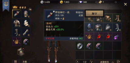 在选择好武器后,也要搭配相应的套装进行配合。我这套暴击明显跟黑龙套相冲突,平时我基本都用的是骨魔套,属性相性恰好符合我的方向。