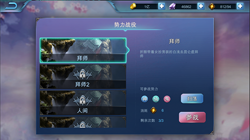 战役中,玩家通过消耗行动力,可以进行闯关。闯关胜利后,便可以挑战下一关卡。每日有3次挑战机会,每次挑战消耗6点行动力。第一天挑战的结果会被记录下来,如果到了第二天副本被重置后,玩家可以点击扫荡直接前往到第一天尚未挑战的关卡。