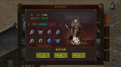 第四种方式是通过【激战BOSS】功能里直接传送到【玛雅神殿二层】。玩家只要点击【激战BOSS】页面,点击【黄泉魔尊】BOSS,在界面下方就能看到的传送按钮,玩家需要一个玛雅卷轴传送到【玛雅神殿二层】,玩家会自动移动到【黄泉魔尊】身边进行击杀。