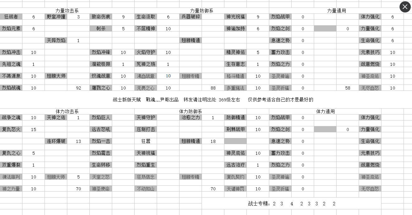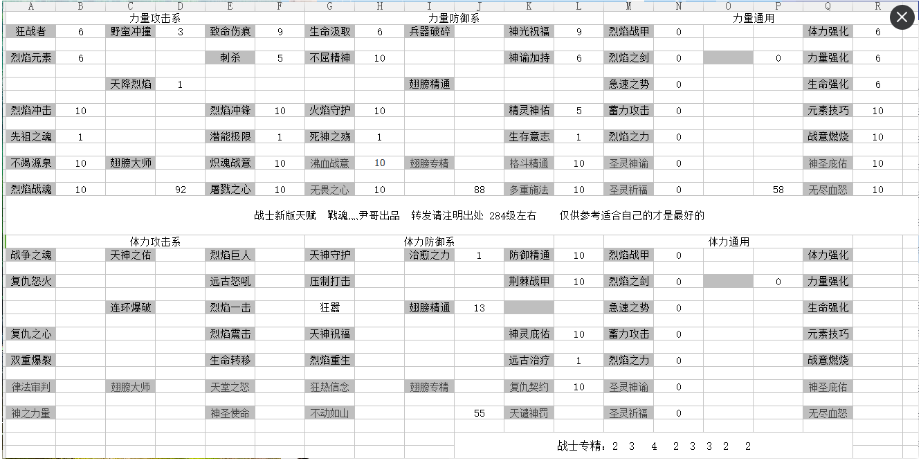以上加好 剩下的点数全部加体力 会有很多玩家问为什么全部加体力 因为 根据战士天赋体力中的攻击系左路倒数第二个 律法审判(PVP)满级